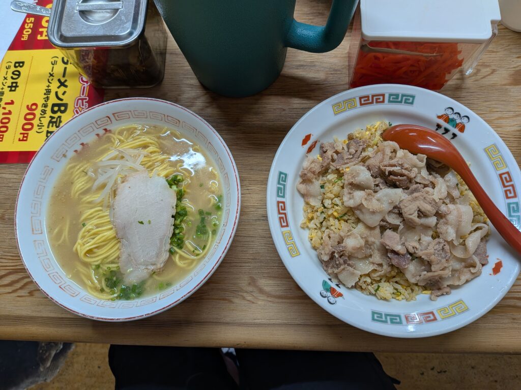 娘娘といえば北九州のソウルフード的存在で、地元の人に愛され続けて数十年。このボリューム感とコストパフォーマンスの良さは、まさに街中華の醍醐味です。ラーメンのあっさりとした優しい味わいと、焼飯のガツンとした満足感のバランスが絶妙で、お腹も心も満たされる一食でした。次回は肉やきめし大に挑戦してみようと思います。食欲旺盛な高校時代でも完食することができなかったのですが、当時はラーメン+肉やきめし大だったからでしょう。